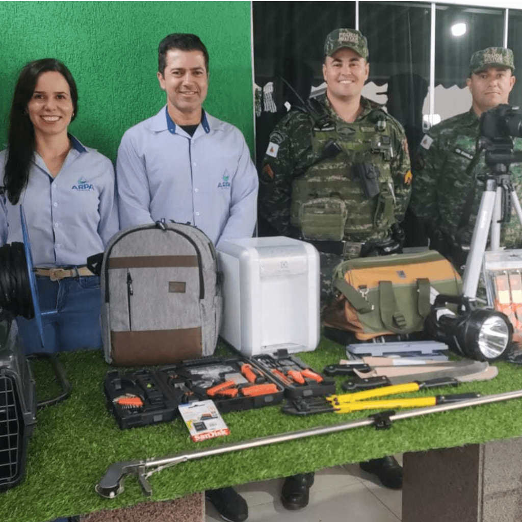 A aquisição dos equipamentos operacionais, 02 facões, 01 case de máquina fotográfica, 01 cartão de memória, 01 alicate corta vergalhão, 04 bandoleiras, 01 parquímetro digital, 01 purificador de água, 01 jogo de ferramentas, 02 caixas para transporte de pequenos animais, 01 escada retrátil, e 01cinta para carga com catraca, foi possibilitada por meio da apresentação de projeto ao Ministério Público de Minas Gerais – MPMG, sob a titularidade do Dr. Cleber Augusto Silva, Promotor de Justiça titular da 4ª Promotoria em Campo Belo/MG, bem como para a ARPA Rio Grande, que conjuntamente avaliaram os quesitos técnicos, econômicos e socioambientais, permitindo assim, que os equipamentos pudessem ser adquiridos com recursos de compensações ambientais.